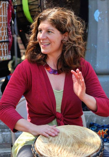 I am a drummer. I started drumming at WDC’s beloved Malcolm X Drum Circle in 1998. From there, I fell in love with hand drums and have studied Latin, African and Middle Eastern Percussion with many teachers: Luis Garay, Jaqui MacMillan, Mamady Keita, Layne Redmond, Scott Robinson, Tammi Hessen, Baile McKnight, Mahiri Edwards Keita, Jason Walker, Daveed Korup, Kristen Arant and Monette Marino. I currently play djembe, dunun, sangban, kenkeni, conga, bongos, dumbek, frame drum and percussive instruments. I am the percussionist for Djesben, a trio that has been playing its own unique world-jazz-groove music since 1999 and am a former member of the Bele Bele Rhythm Collective, an all-women’s drum troupe that plays West African rhythms and songs.