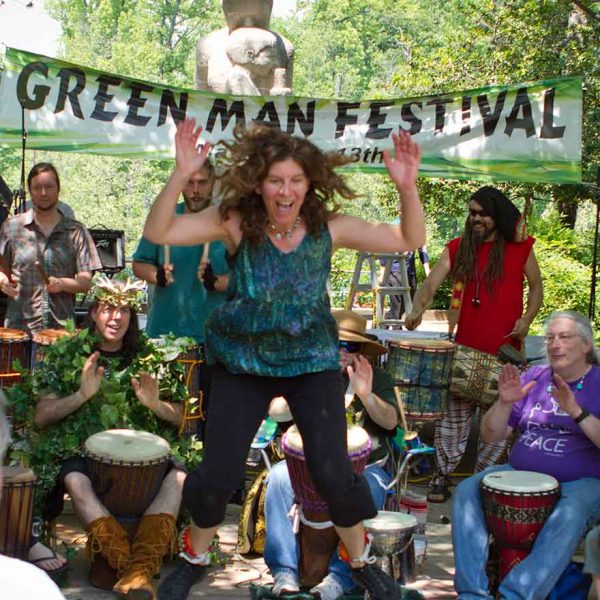 Join Katy for a community drum circle at the 18th Green Man Festival in Roosevelt Center, Greenbelt MD.