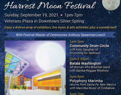 Community Drum Circle with Katy Gaughan at Veterans Plaza in Silver Spring, MD. Drums provided or bring your own. Great fun for all ages!