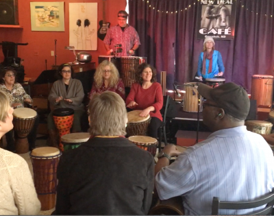 The New Deal Cafe is the perfect venue for a drum circle as it supports home grown community music! Craft beer, wines and a delicious vegan menu are all must tries after drumming together!