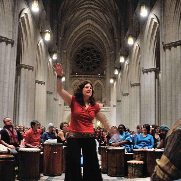In 2015, 2016, 2017 & 2018, Katy led the Seeing Deeper Drum Circle: Drumming the Heart Beat of God at the Washington National Cathedral in Washington, DC. These drum circles have attracted up to 700 people. The experience of drumming, praying, singing, dancing and listening for God’s pulse within in the nation’s house of prayer is incredibly special and powerful. In 2017, National Public Radio live streamed the drum circle and it went viral! 400,000 people viewed the drum circle as it was happening! To date, the video has been seen over 600,00 times! Check it out here!