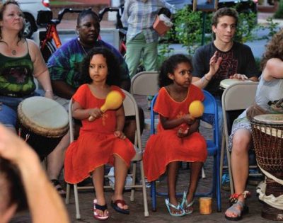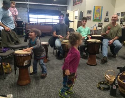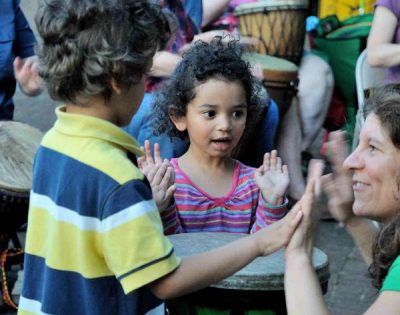 Family drum circles use games and storytelling to engage drummers of all ages. Kids are encouraged to participate and even lead the group!